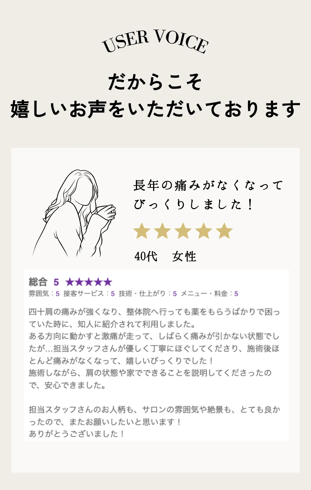 痛みや不調の根本に向き合い、ラクに動けて、美しく見える身体を無理なく手に入れられます。